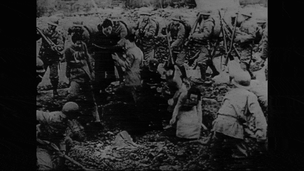日军以刺刀沙画中国俘虏。