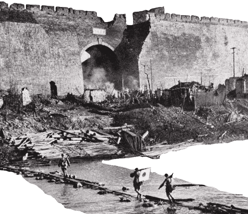 日军入侵南京城门,遍地尸体。